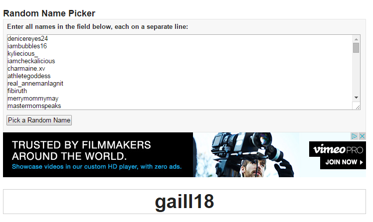 - 我们将通过random.org上公布获奖名单2015年7月13日这样你就可以敬请回复