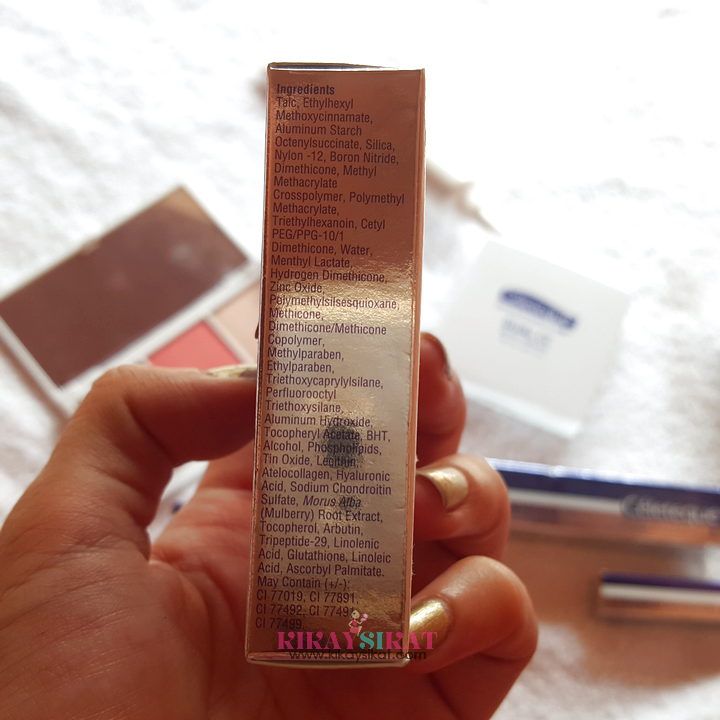 多任务CéletequeDermoCosmetics颊彩棒(P645.00)是一个必须在每一个kikay套件,因为它很容易亮点,提亮,亮,条件,并增加了颜色的脸颊,嘴唇,甚至眼睛。它使皮肤水分,由于维生素E和甜杏仁油的保湿性能。有皮肤干燥?颊彩棒也有红没药醇,来自德国洋甘菊植物精油,从而减少针片状皮肤干燥引起的。它也能减少细纹的实际使用情况的第四周达到49.89%。