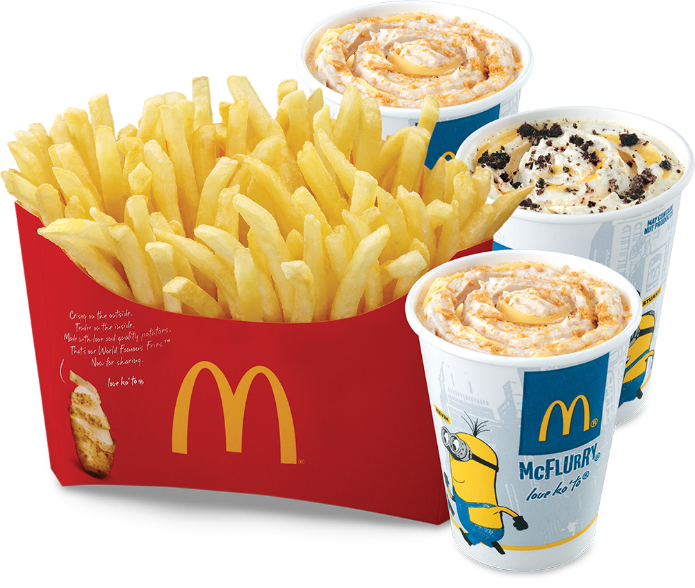 有心情来一杯McFlurry吗?去小黄人中薯条和麦旋风套餐因为只有Php95。你有一个选择